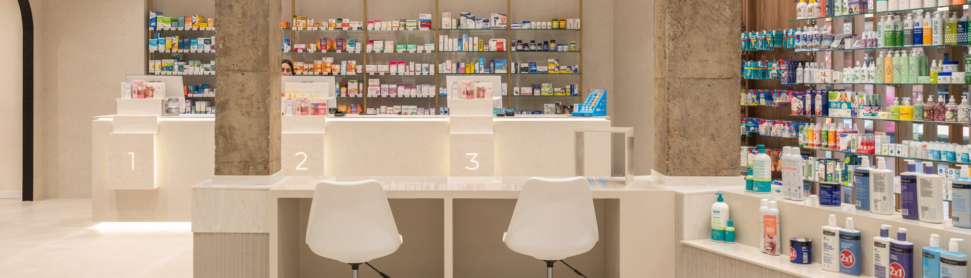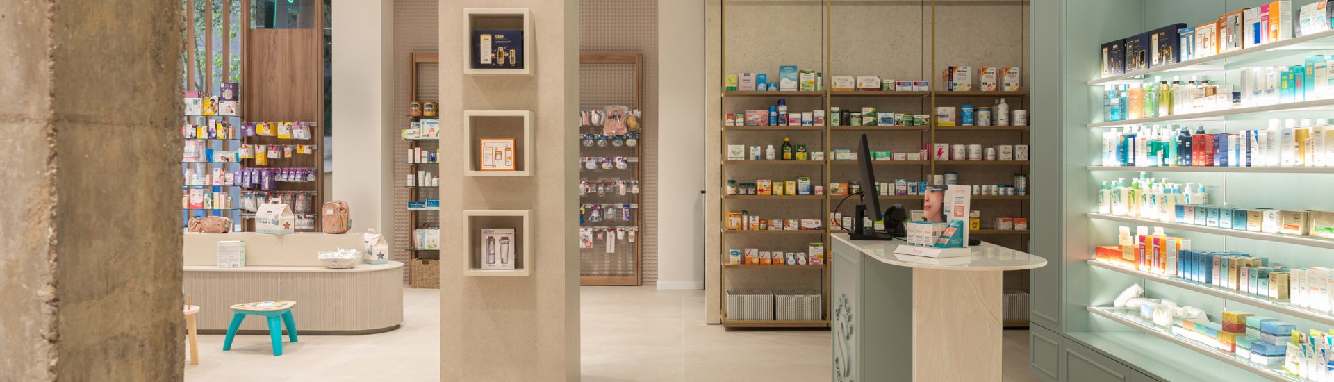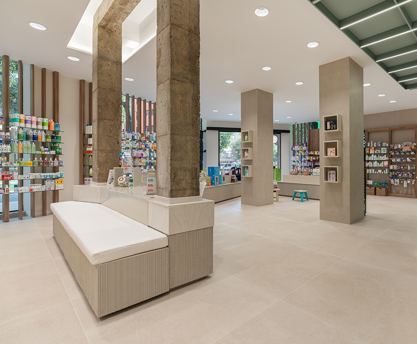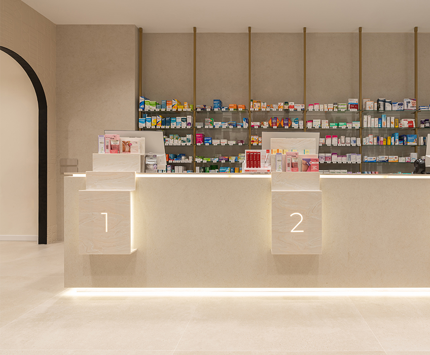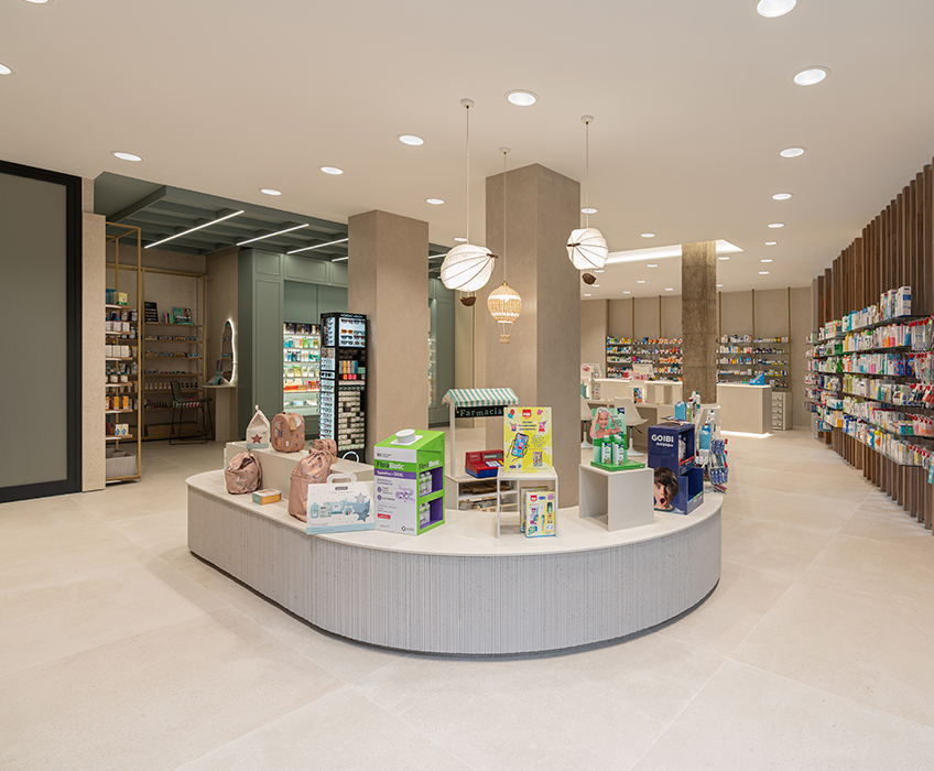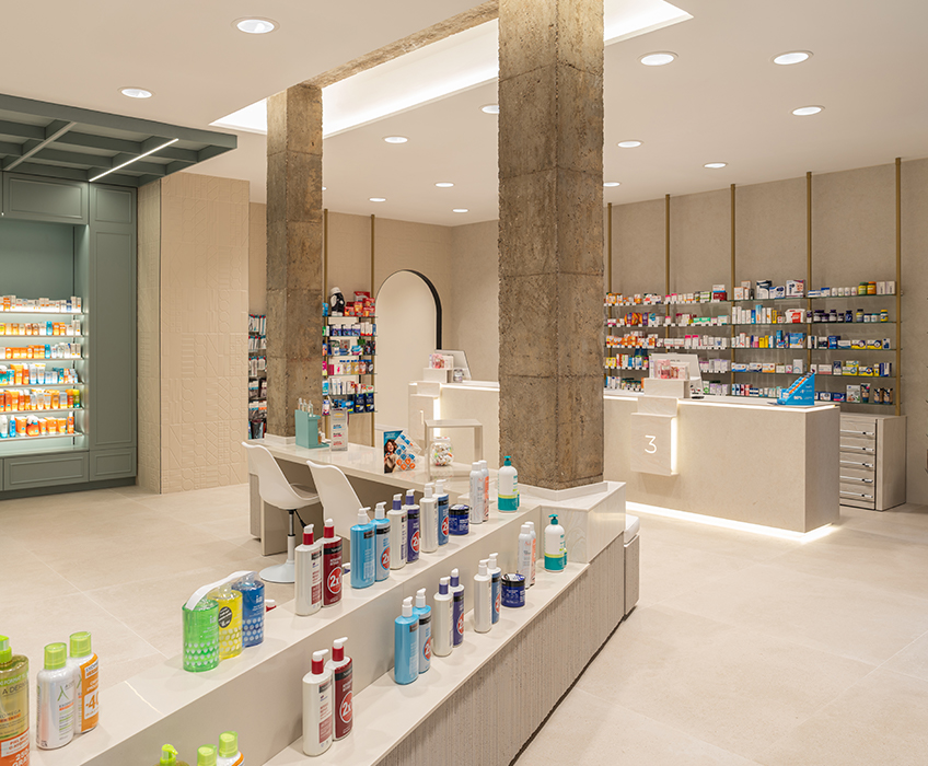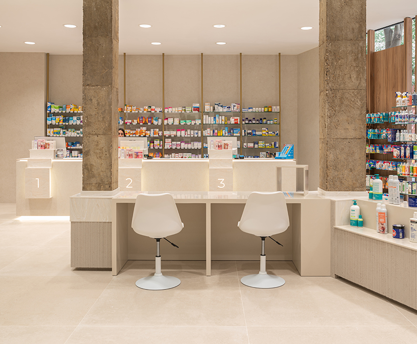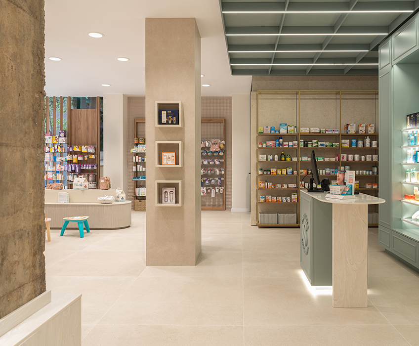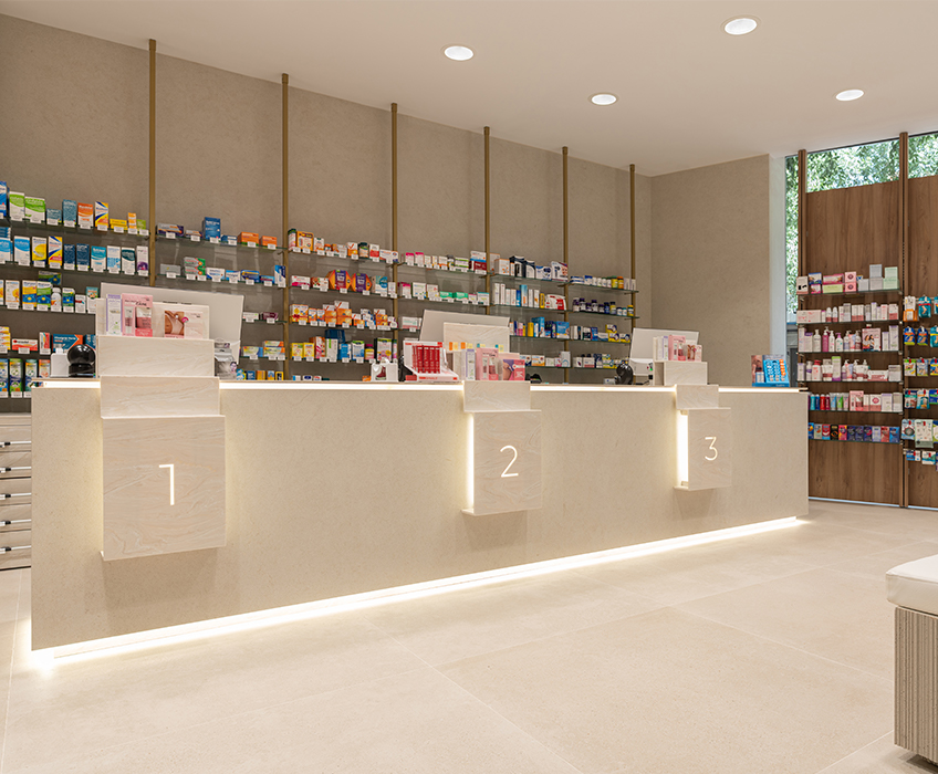Aquí, la farmacia deja de ser un punto de venta para convertirse en un entorno emocional, donde la arquitectura, los materiales y la luz trabajan juntos para crear armonía y personalidad. Cada detalle refuerza la identidad de la marca, transformando la experiencia del usuario en un momento memorable y pleno.