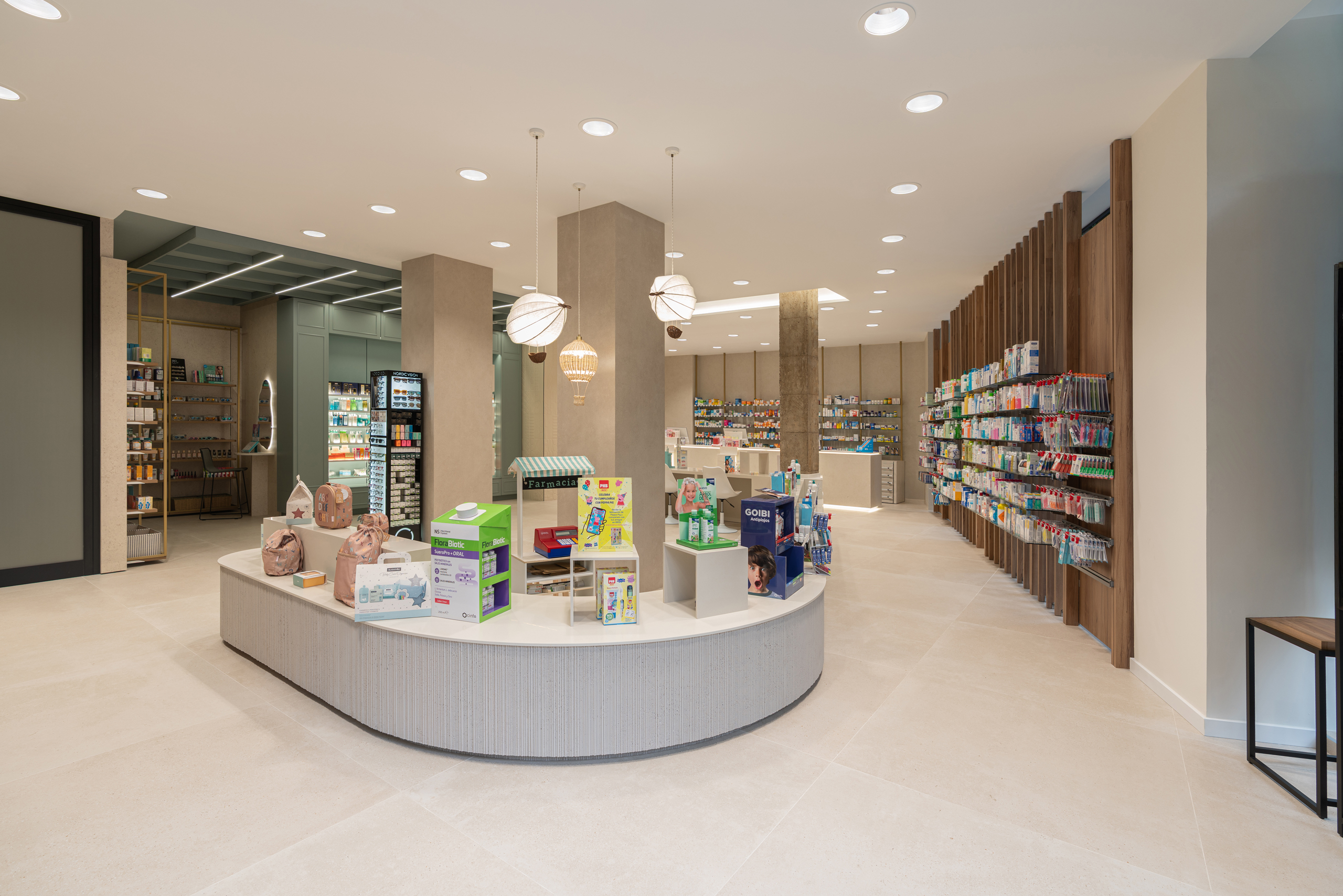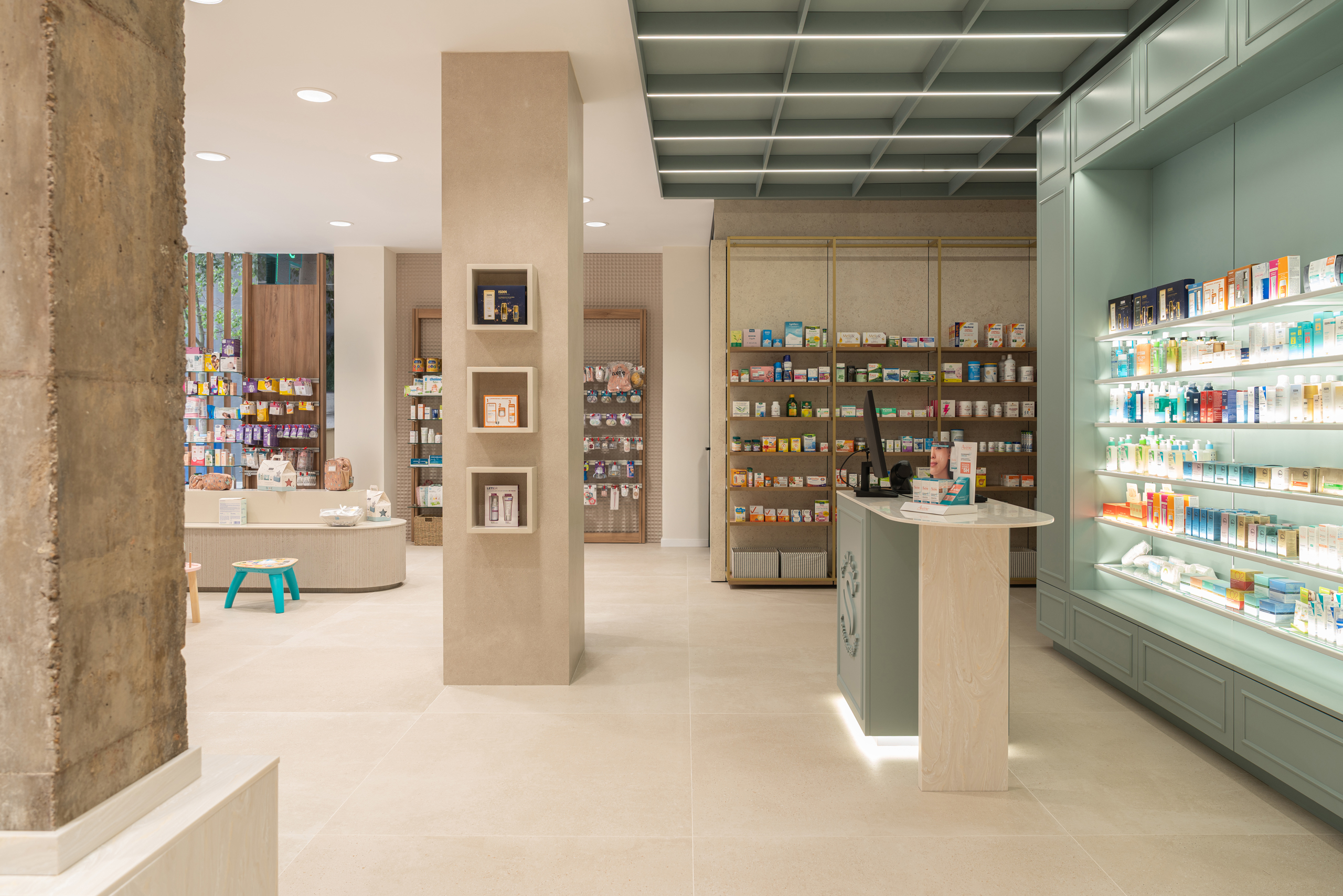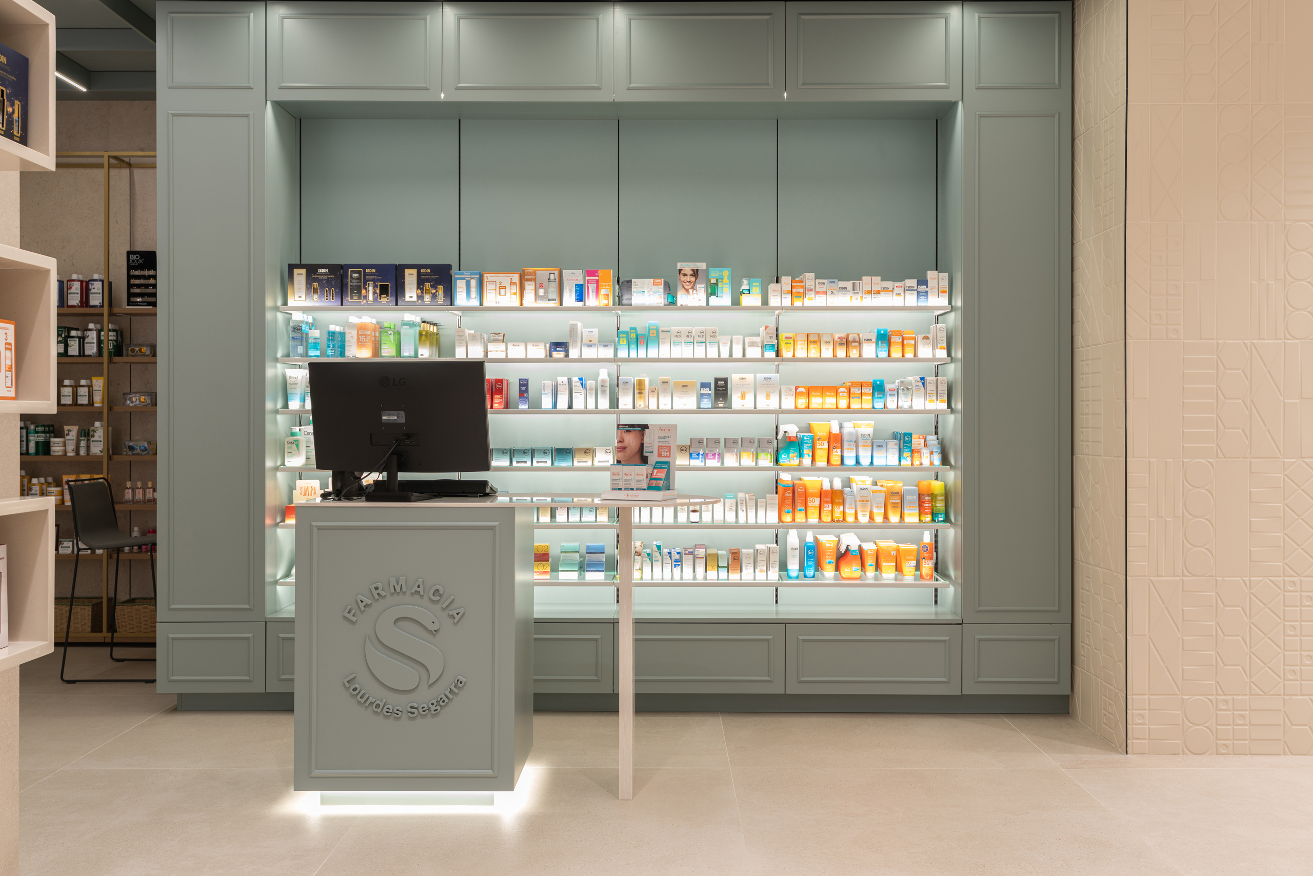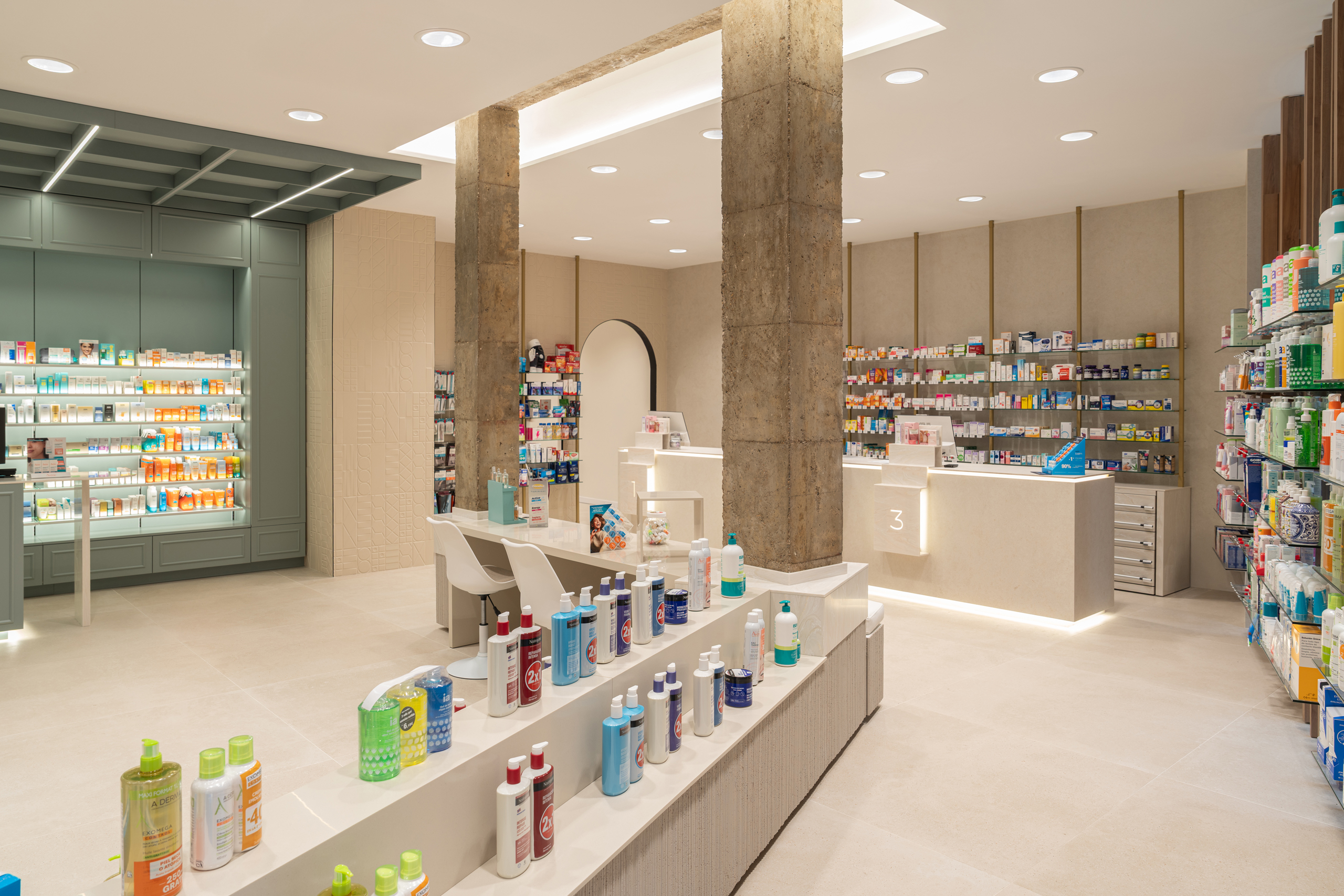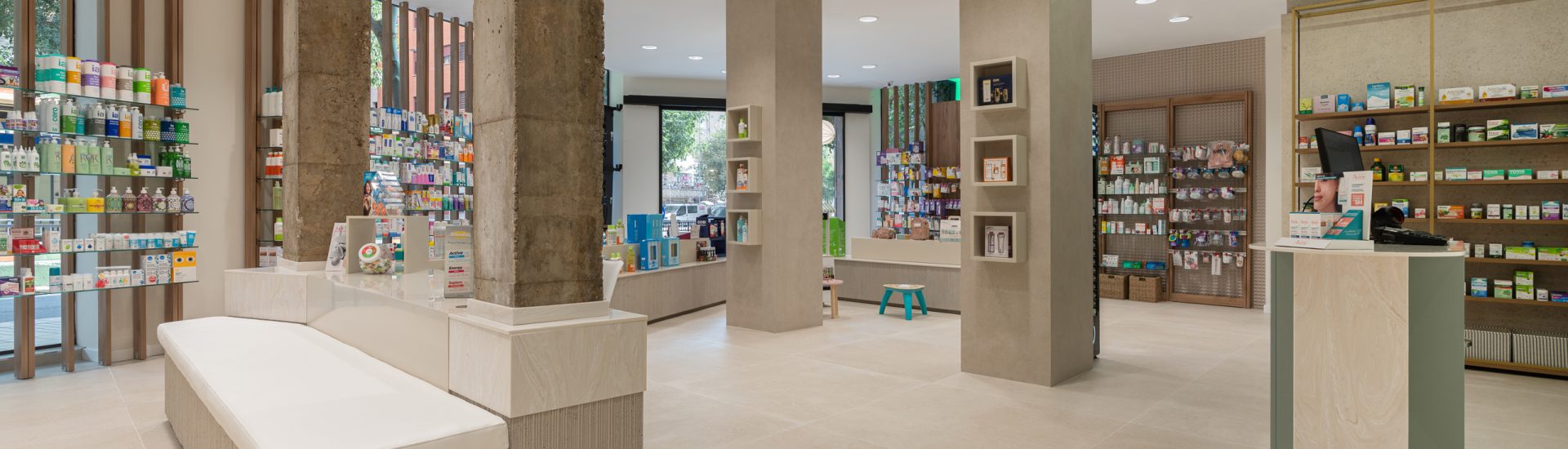 Aquí, la farmacia deja de ser un punto de venta para convertirse en un entorno emocional, donde la arquitectura, los materiales y la luz trabajan juntos para crear armonía y personalidad. Cada detalle refuerza la identidad de la marca, transformando la experiencia del usuario en un momento memorable y pleno.