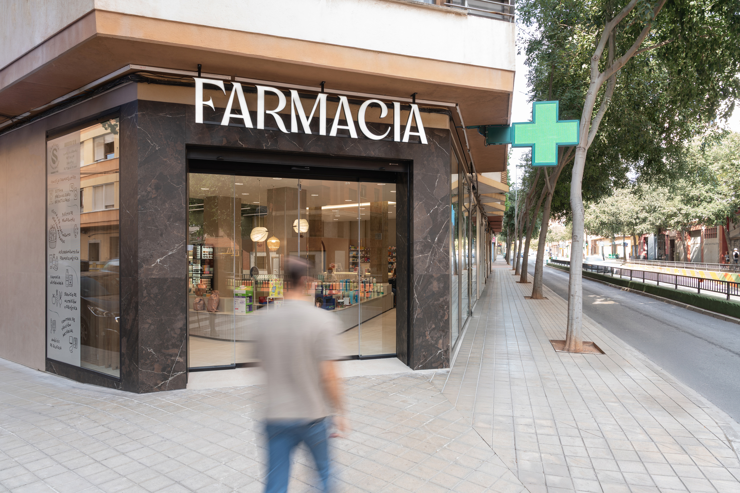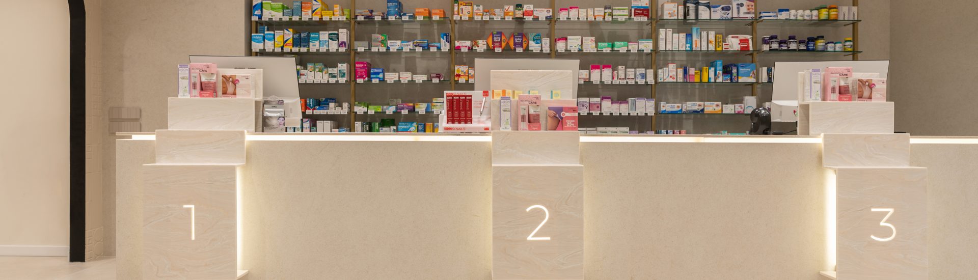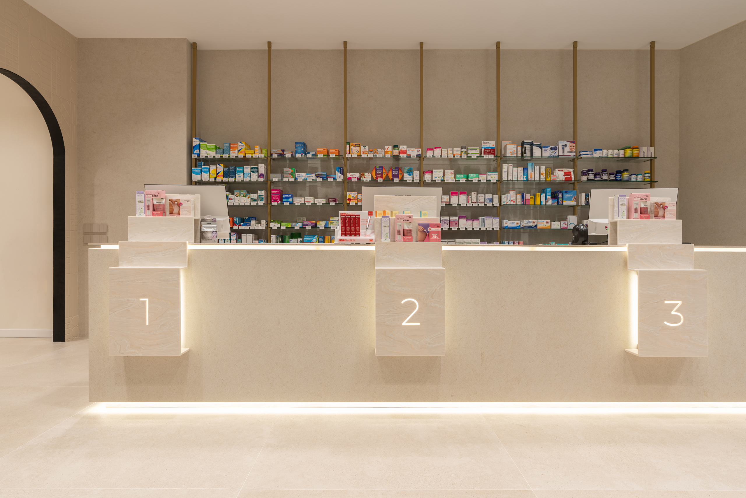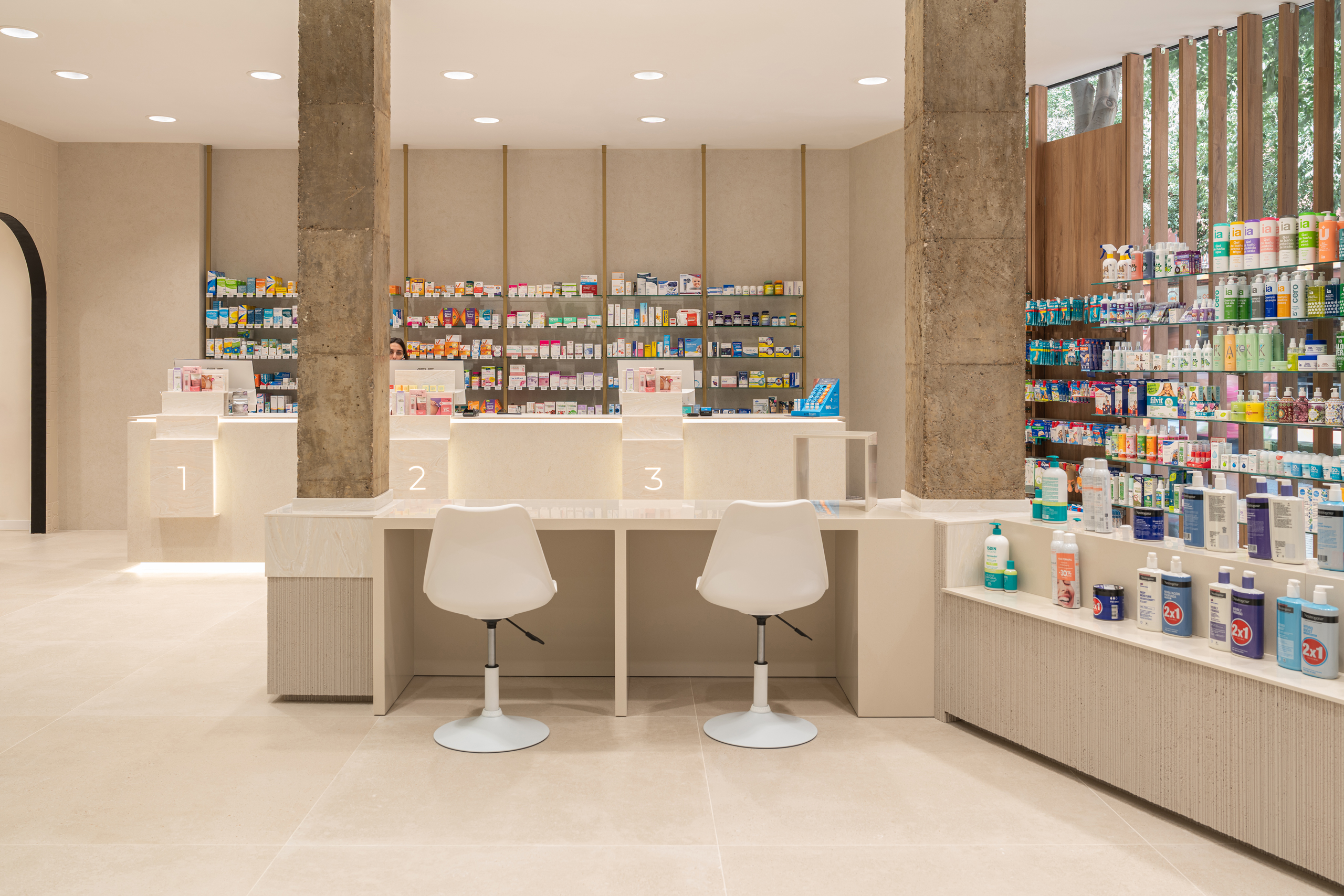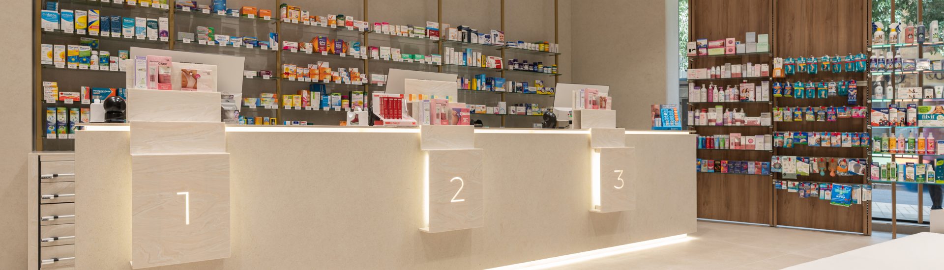 Aquí, la farmacia deja de ser un punto de venta para convertirse en un entorno emocional, donde la arquitectura, los materiales y la luz trabajan juntos para crear armonía y personalidad. Cada detalle refuerza la identidad de la marca, transformando la experiencia del usuario en un momento memorable y pleno.